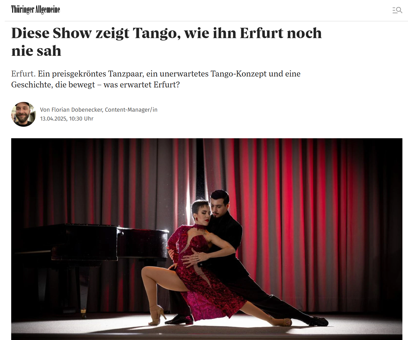 Media Coverage: Tango Show "Pasión en Movimiento". Link here.