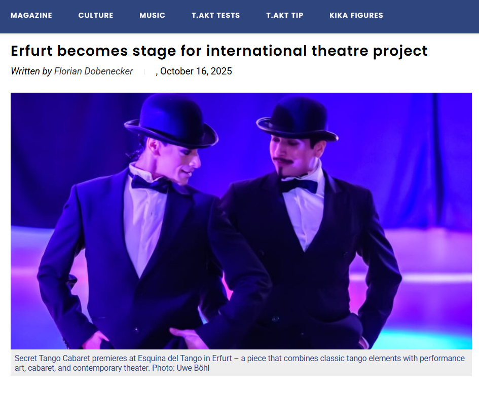 Directly from the vibrant underground scene of Buenos Aires to the stages of Germany. Our production has been recognized as a "high-energy bridge between South America and Europe" by the Thüringer Allgemeine, bringing the heat of Argentina to the heart of the international theater circuit.